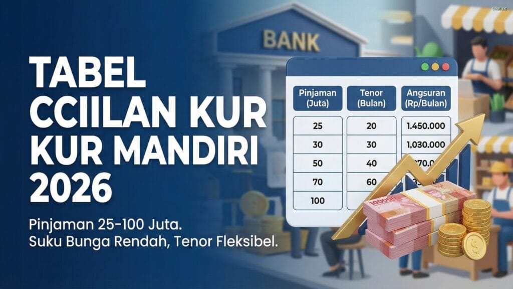 Tabel cicilan KUR Mandiri 2026 menjadi informasi paling banyak pelaku usaha cari menjelang awal tahun. Pasalnya, Bank Mandiri menawarkan Kredit Usaha Rakyat (KUR) dengan bunga rendah hanya 6% per tahun untuk pinjaman mulai 25 juta, 50 juta, hingga 100 juta rupiah. Nah, artikel ini menyajikan simulasi lengkap beserta syarat dan cara pengajuan terbaru per 2026.